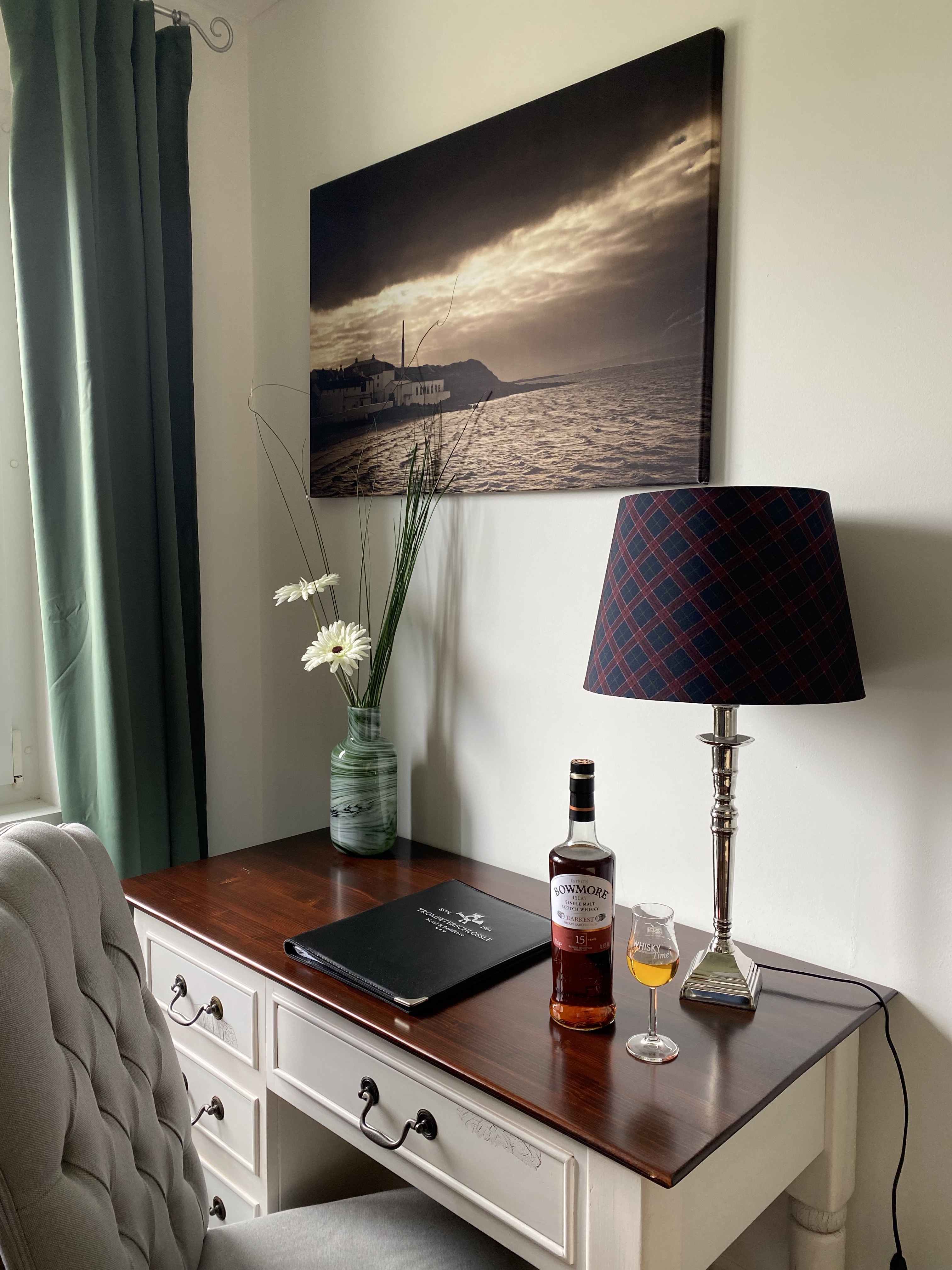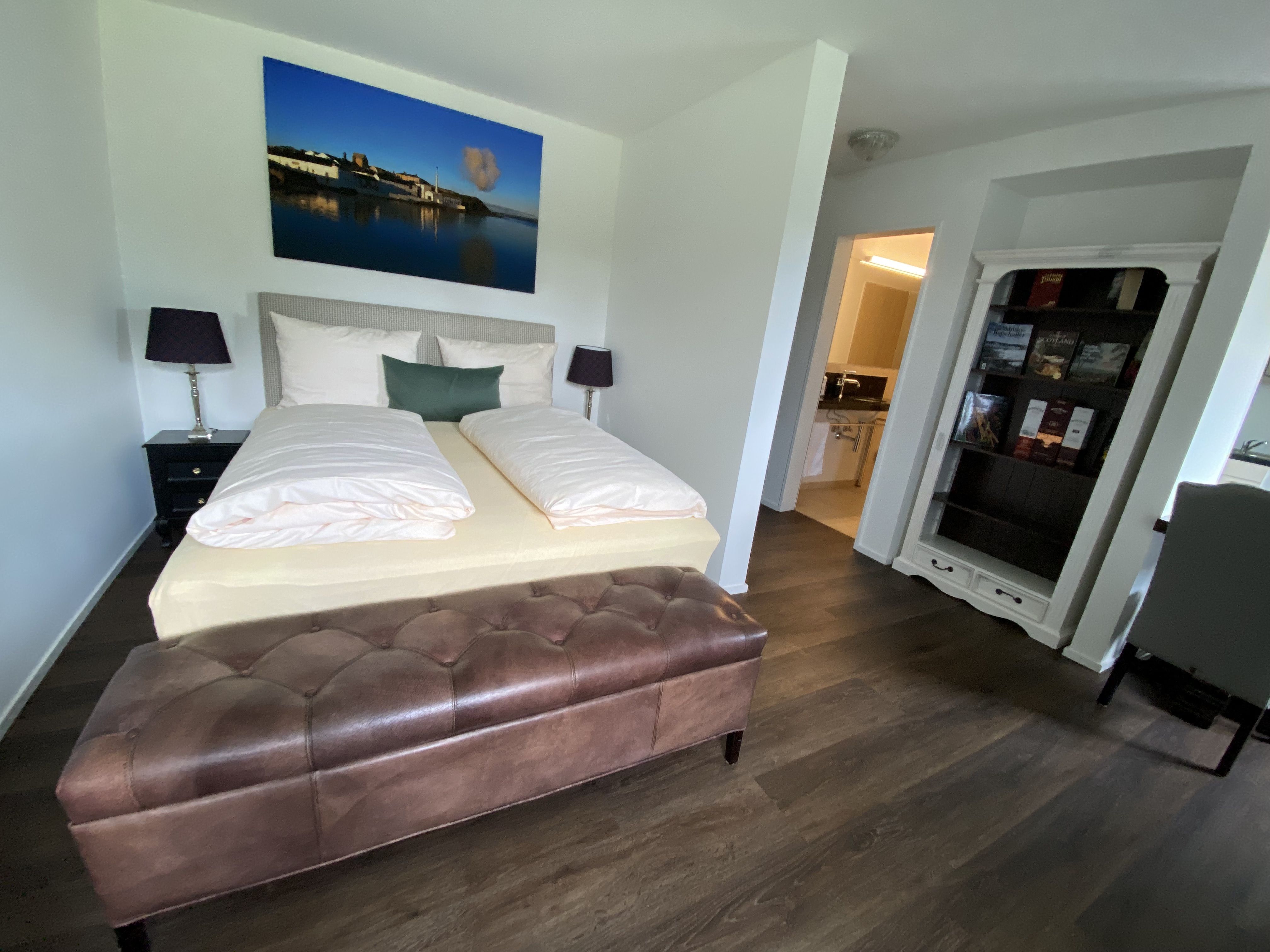 Unsere Apartments sind im schottischen Landhaus-Stil eingerichtet. Das Besondere: Jedes Zimmer hat einen thematischen Bezug zu einer Whiskydestillerie in Schottland oder Irland. Alle Apartments sind ruhig zur Seeseite (Seerhein) oder zur Parkseite gelegen.