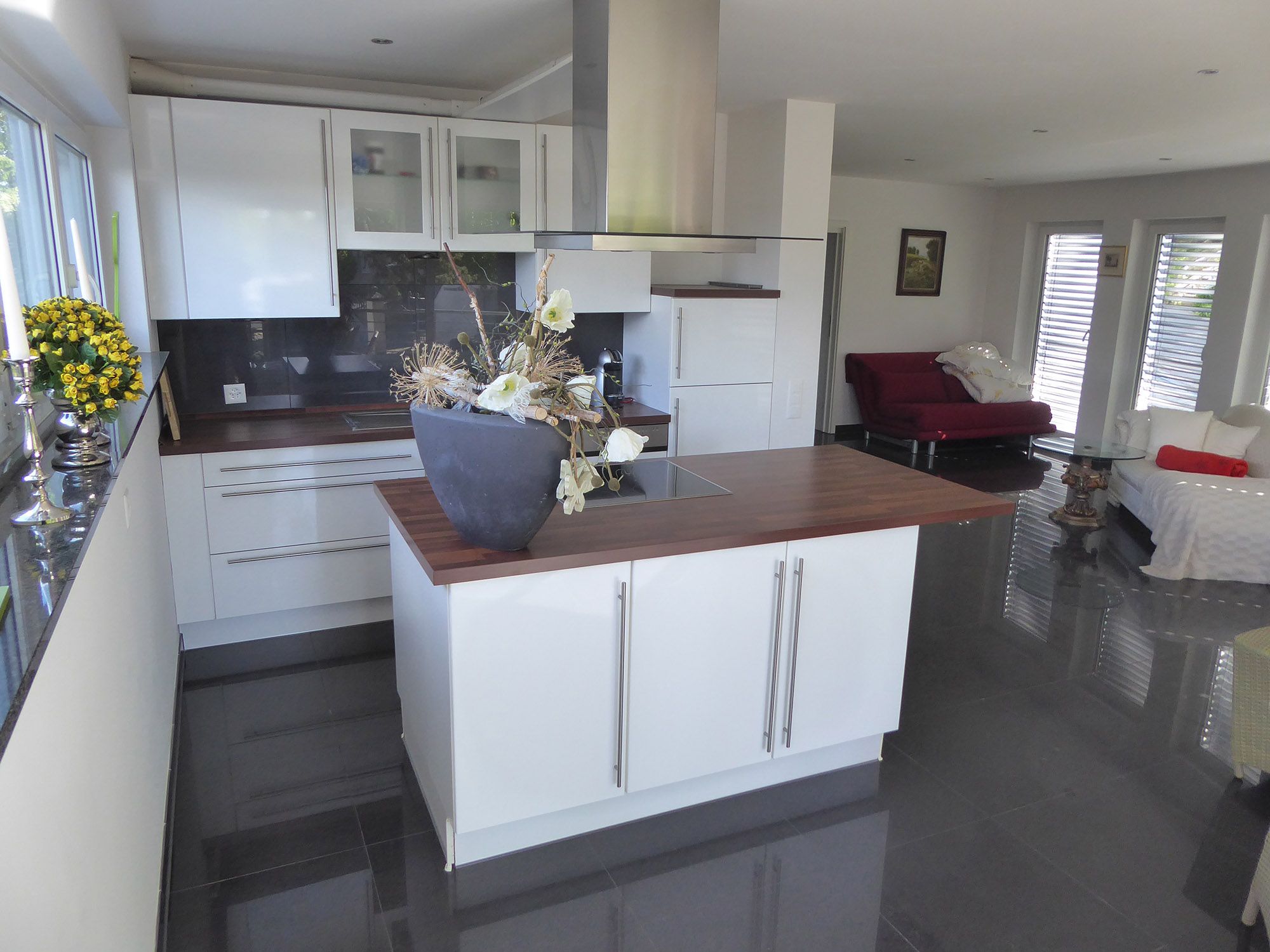 - Voll ausgestattete Wohnküche mit Nespresso-Kaffeemaschine, Spülmaschine und Kochfeld